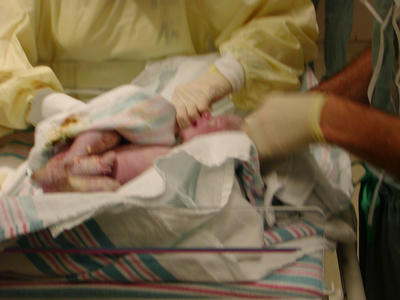 Wiping off the vernix.